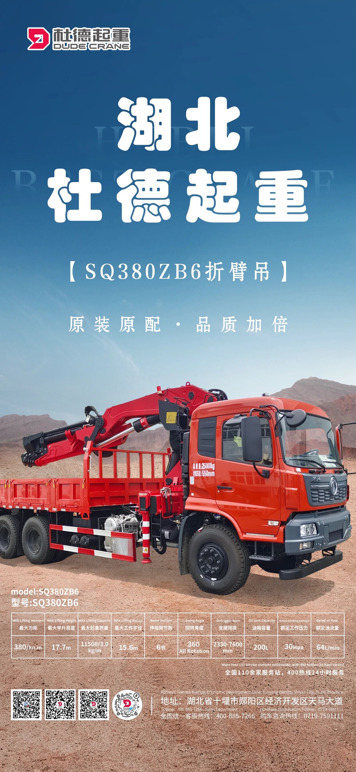 湖北杜德SQ380ZB6 折臂吊,高效作業利器!